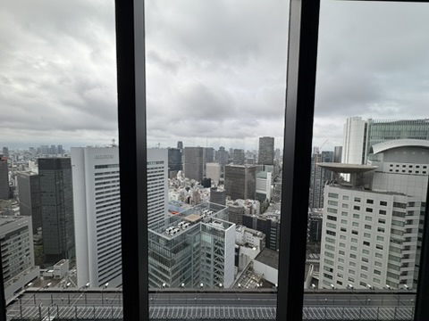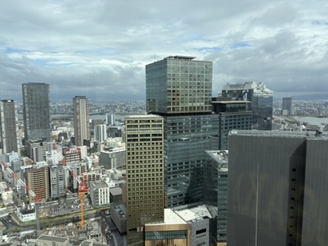 ロビーフロアのレストランでの実施です。ロケーションは良くて、角の席に通されたこともあって大阪しないを一望しながらの食事でした。
